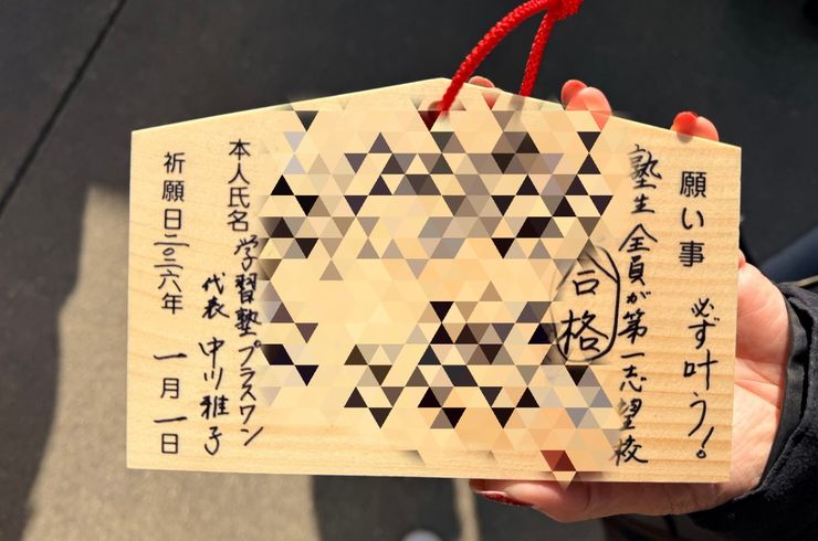 2026/01/15《第一号たちが今日!》 私は新年元旦に必ず初詣と共に絵馬を奉納します そこに受験生である中3の塾生全員の名前を書いています もうずっーと続けてます 周りで絵馬に記入している皆さんは 珍しいものでも見るような顔つきで私を見ます また全員を思い出しながら書くので 時間ごかかりますよ~(笑) でも気にしない! 教室を思い出し 誰がどこに座ってたかを頭に描いて 全員分! ... -