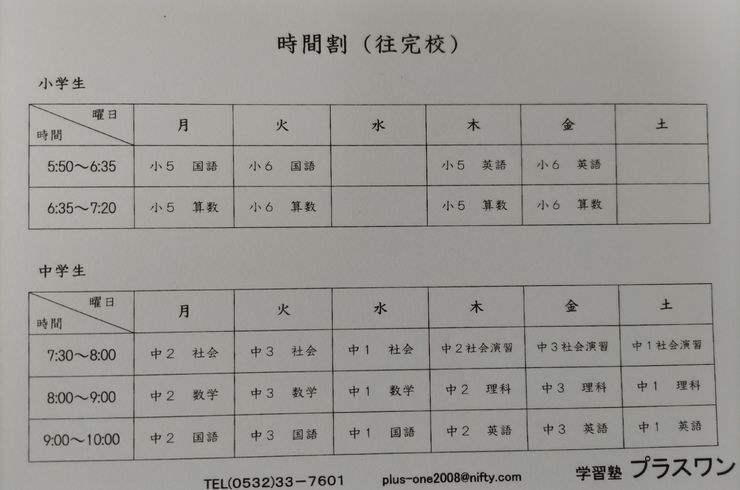 ご検討していただきやすいよう、3月からの時間割を掲載いたします。